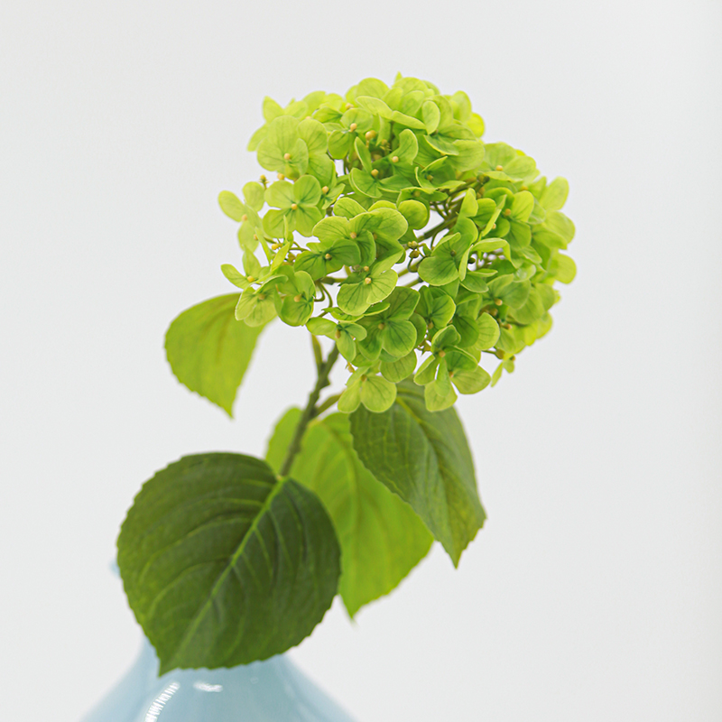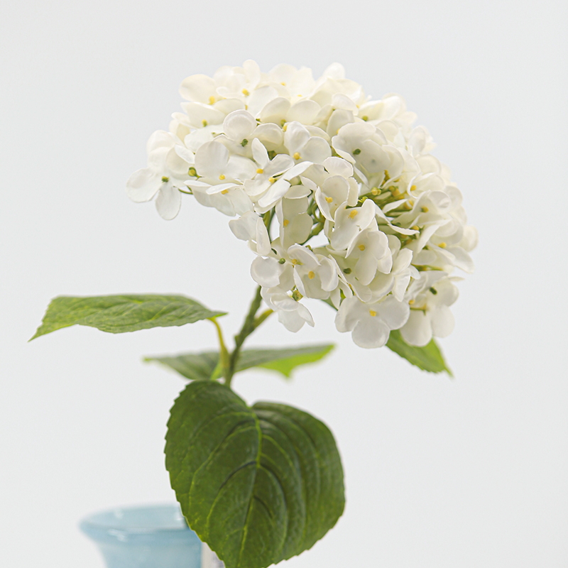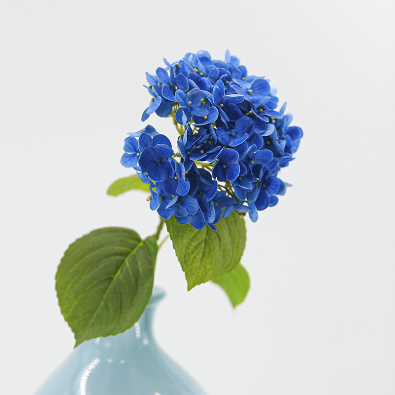 The materials we use for making artificial hydrangeas are divided into two types: tactile fabric and film.Hydrangeas made of tactile fabric have a texture more similar to real flowers—soft and moist.In contrast, those made of film have thinner petals and a better shaping effect.