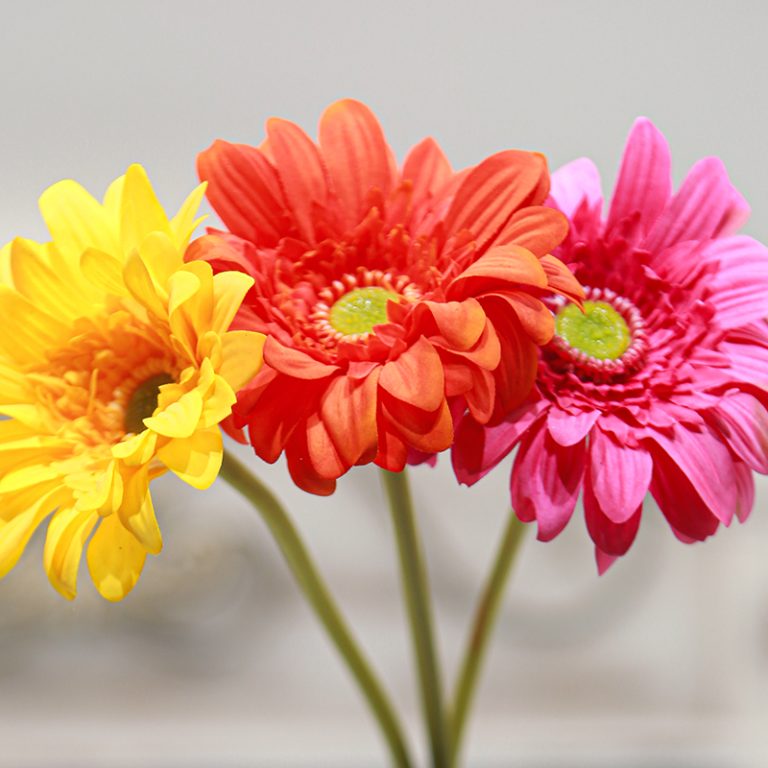 Real-Touch Moisturizing Gerbera Daisy are widely used in home decoration, commercial space arrangement, wedding and celebration events, film and stage props, photography and advertising, etc., due to their characteristics of long-lasting beauty and easy maintenance.