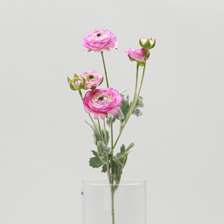 Silk Artificial Ranunculus are widely used in home decoration, commercial space arrangement, wedding and celebration events, film and stage props, photography and advertising, etc., due to their characteristics of long-lasting beauty and easy maintenance.