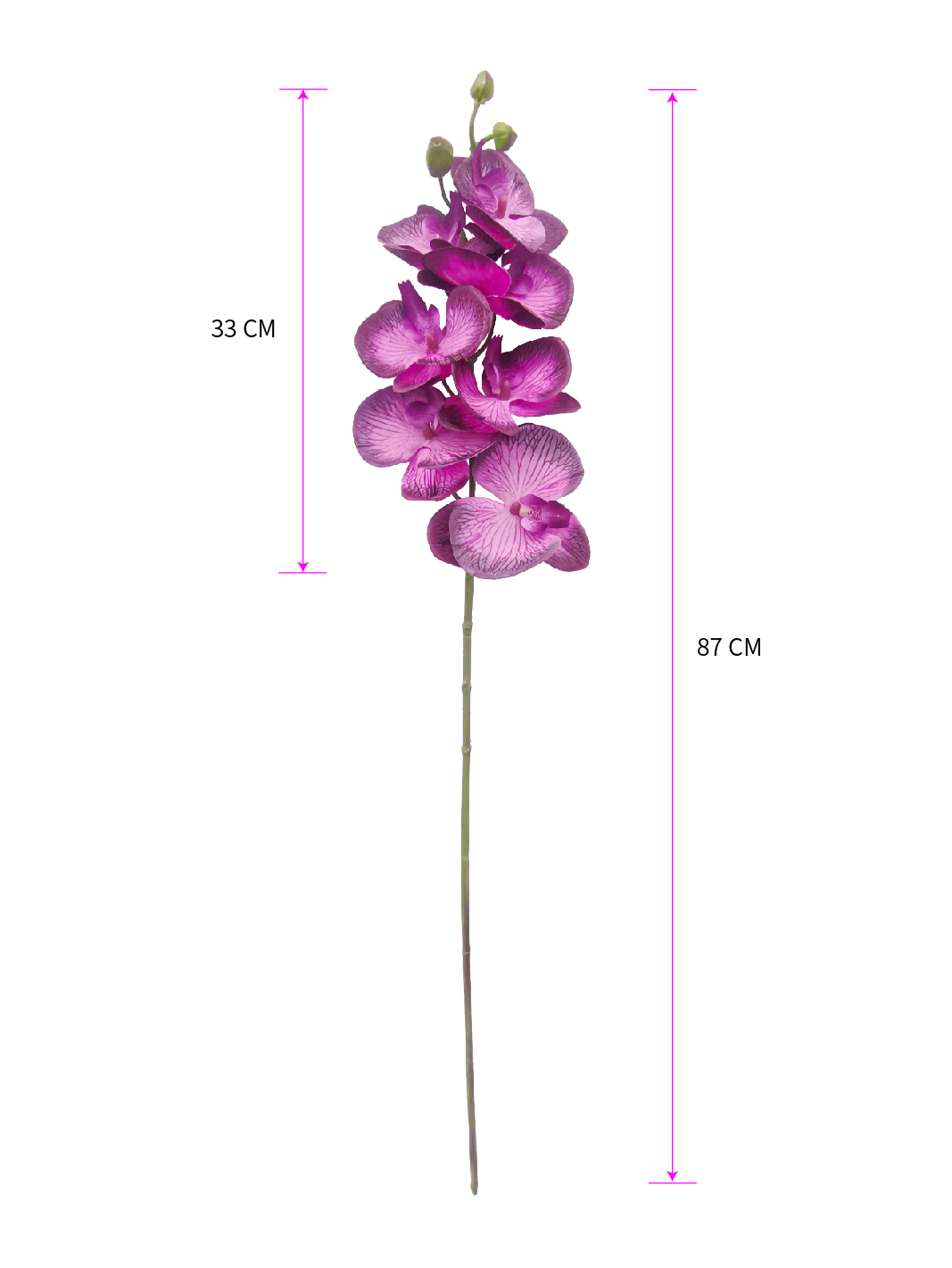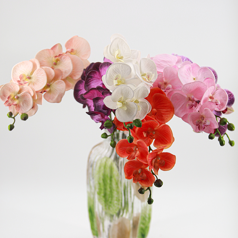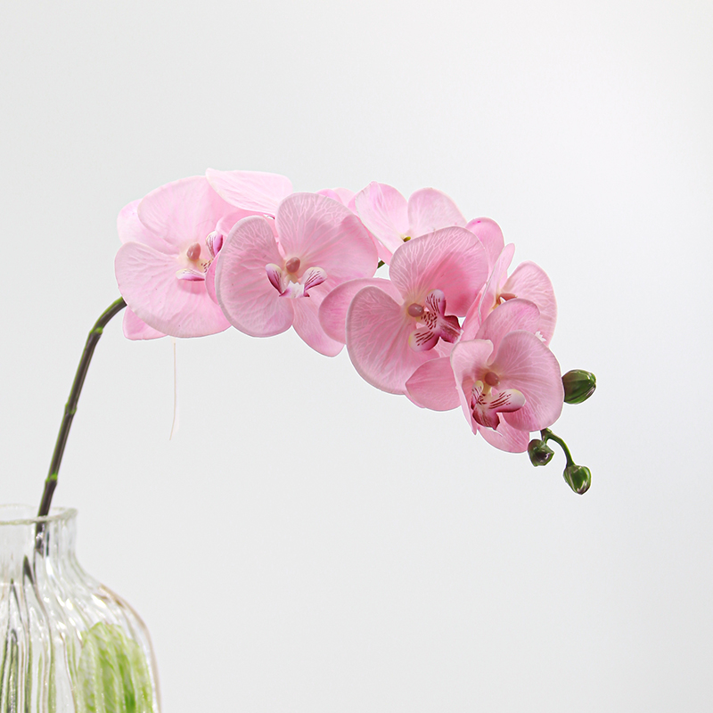 Artificial Phalaenopsis are widely used in home decoration, commercial space arrangement, wedding and celebration events, film and stage props, photography and advertising, etc., due to their characteristics of long-lasting beauty and easy maintenance.